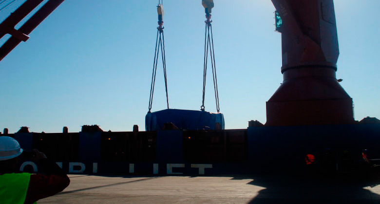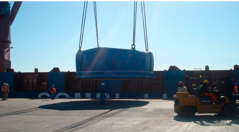 Con un peso total de 1.800 toneladas, una altura de 65mts., un ancho de 25 mts. y un largo de 85 mts., se trato de uno de los embarques de mayor relevancia despachados en el país.
